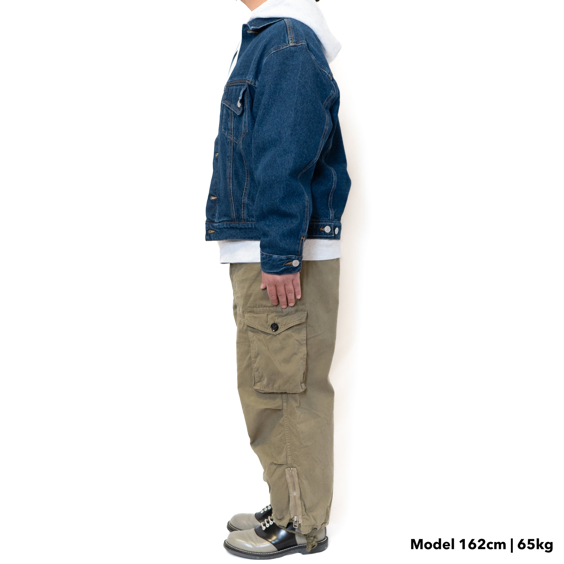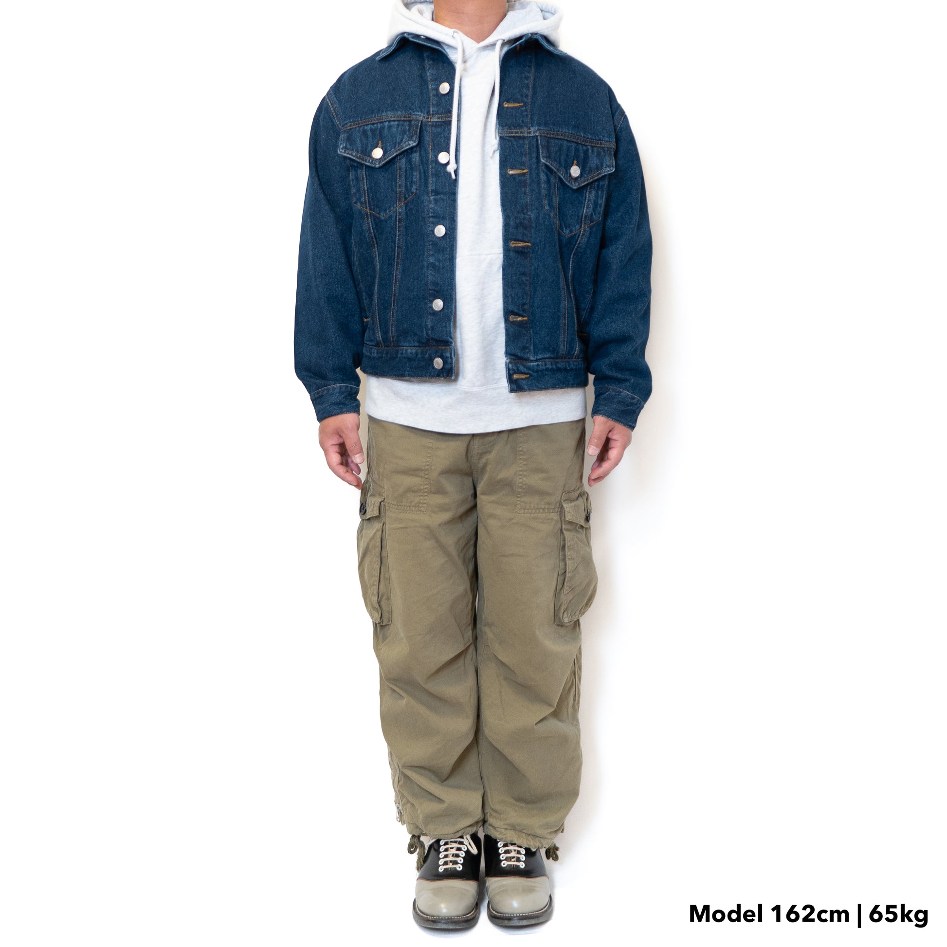 コットン100%、10オンス(分厚め)の素材を採用、ゴワッとした生地感が特徴です。