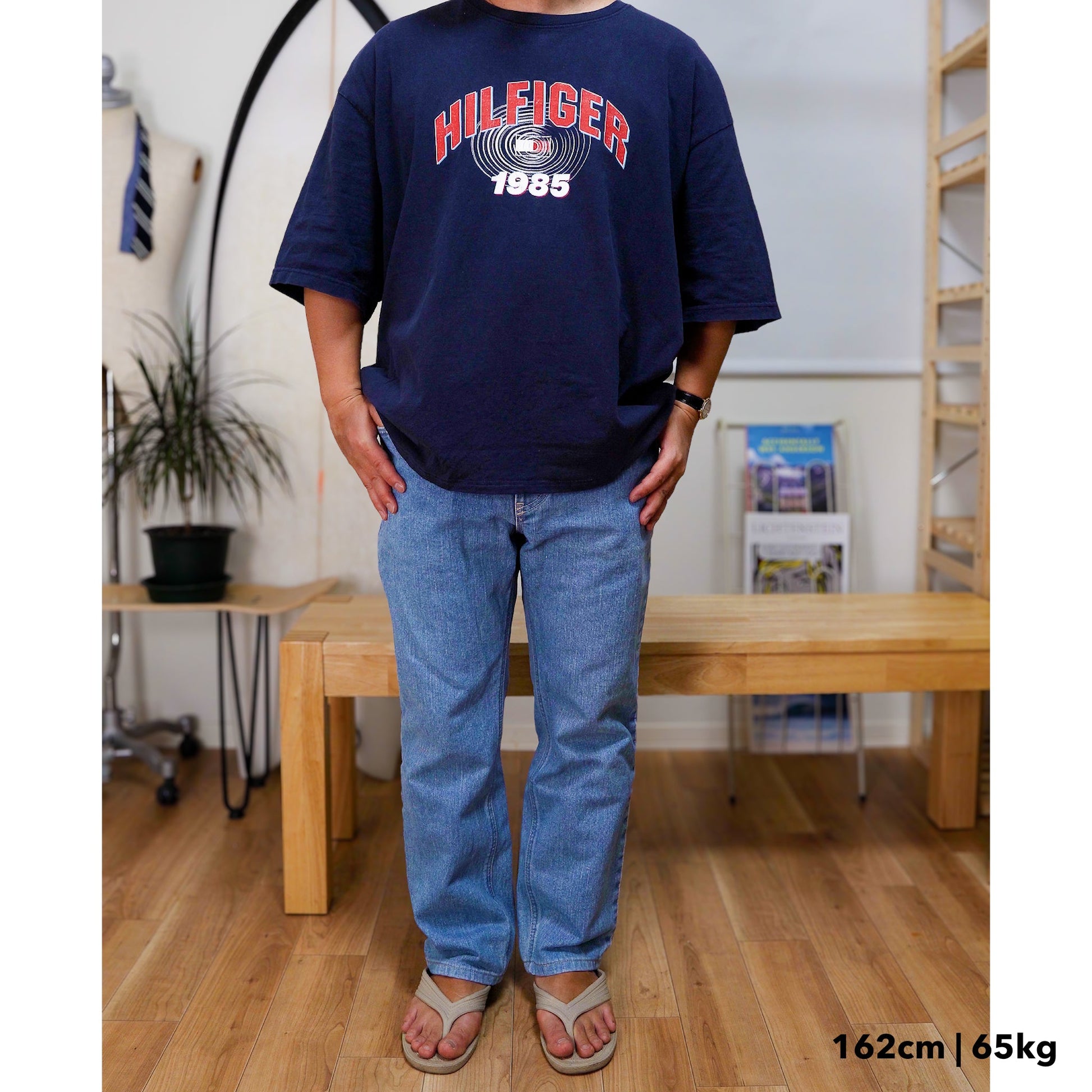 【モデル着用感】3. レギュラーフィット(標準的なサイズ感で、程よいゆとりのあるシルエット) ※162cm 65kg
